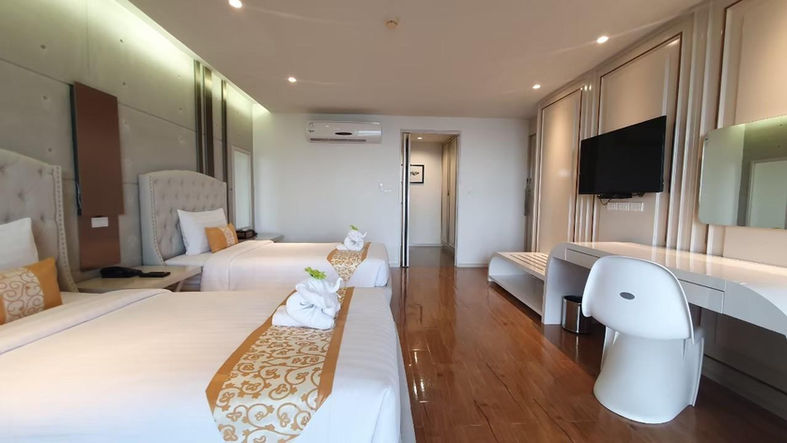 Our VIP Room features two elegantly appointed bedrooms, offering both single and double beds to accommodate up to four persons with ease. The spacious living room serves as a hub for relaxation and socializing, providing the perfect setting to unwind, entertain, or simply enjoy quality time together.