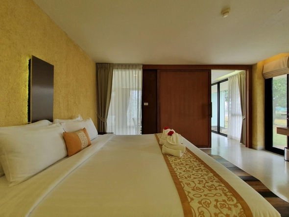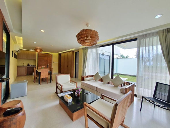 Experience the epitome of luxury and spaciousness in our Junior Suite Villa. This expansive sanctuary spans a generous 120 sq.m., offering a perfect blend of comfort and sophistication. Ideal for couples seeking a lavish retreat, the villa features a beautifully appointed bedroom with a sumptuous single bed and a separate living room, providing both privacy and ample space.